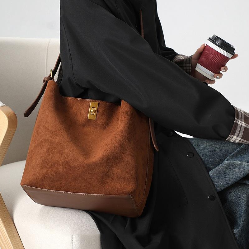 Bucket Bag Women'S Bag Large Capacity Commuter Bag Shoulder Suede Retro Messenger Bag Luggage