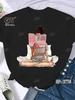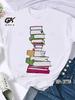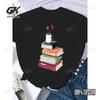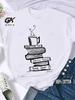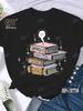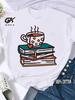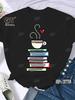 Kaffee Bücher Braune Bücher Amerikanischer Retro Baumwoll T-Shirt Frau Rundhals Halbarm T-Shirts Bedruckte Oberteile Frau Übergroße T-Shirts