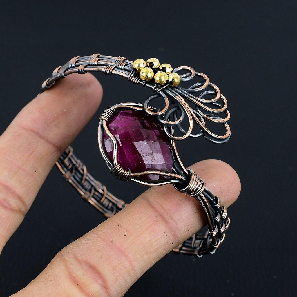 Ruby Bangle, 999 Copper Wire Wrapped Gemstone Jewelry, Handmade Bangle For Thanksgiving