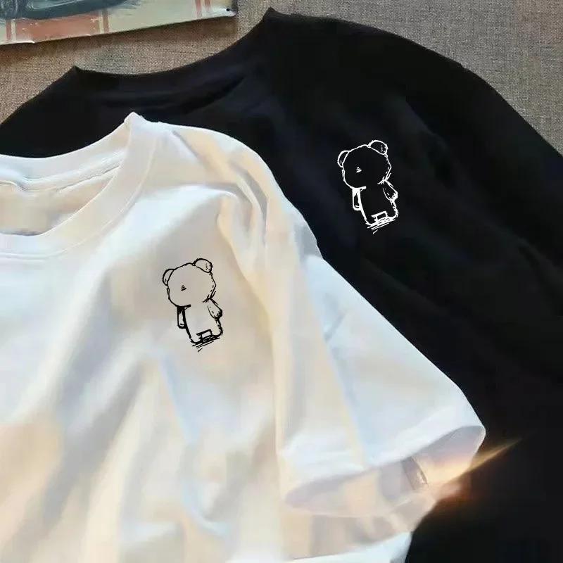 Sommer Kurzarm T-Shirt für Damen Amerikanischer Casual-Stil locker und einfach Baumwoll-T-Shirt