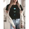 Damen T-Shirt mit Evil Eye Grafikdruck - Kurzarm Rundhals Freizeit-Top für Sommer & Frühling