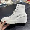 Modische High-Top Canvas-Schuhe mit Blockabsatz für Damen 2025, mit runder Spitze, zum Schnüren, vielseitig, höhenverstärkend, mit dicker Sohle, High-Top-Schuhe