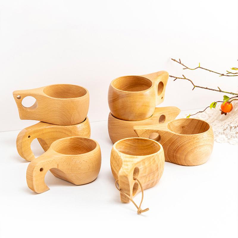 Finnland Kuksa Gummiholz Wasserbecher Tragbarer Kaffeebecher mit Henkel Rindsleder Seilhaken Saft Milch Bier Tee Tasse Outdoor Trinkgeschirr
