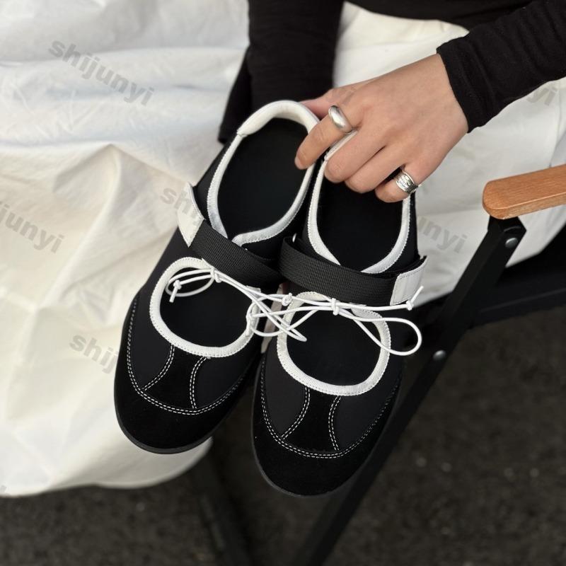 Fashion Women's Casual Flats 2025 Summer New Breathable Lightweight Comfortable Mary Jane Shoes Non Slip Fashion Cross Tied Ballet Shoes