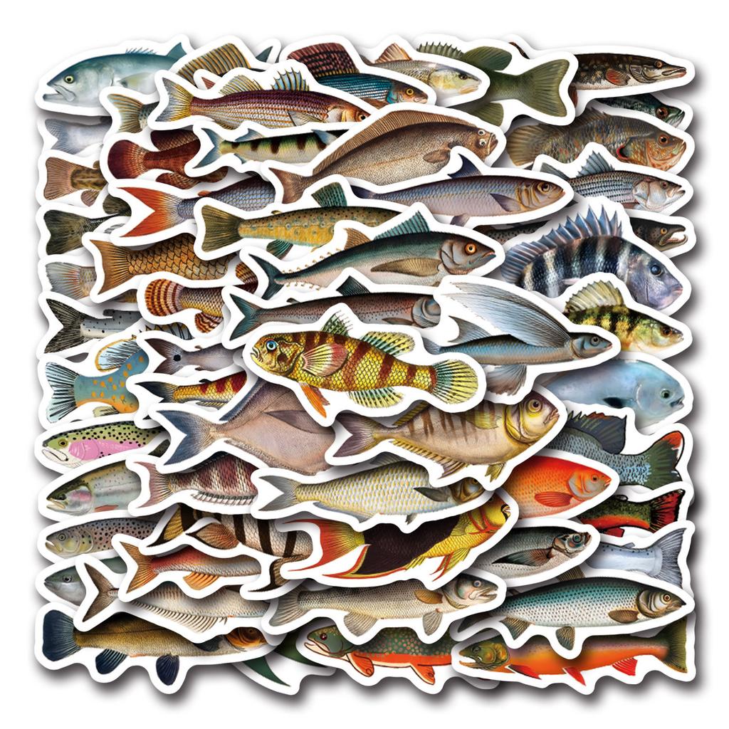 55 Fish Deep Sea Fish Doodle Stickers Decorative Suitcase Laptop Mobile Phone Cartoon Stickers