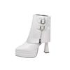 Modische Stilvolle Seitlicher Reißverschluss Quadratischer Absatz Hosenstiefel Herbst Neu Spitz Zehen Metall Schnalle Plateau Rutschfest Kurze Stiefel