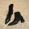 Mode Herbst Damen Vielseitige Mode Spitz Dicke Ferse Nischendesign Wildleder Kurze Stiefel 2025 Neue Spleiß Kurze Stiefel