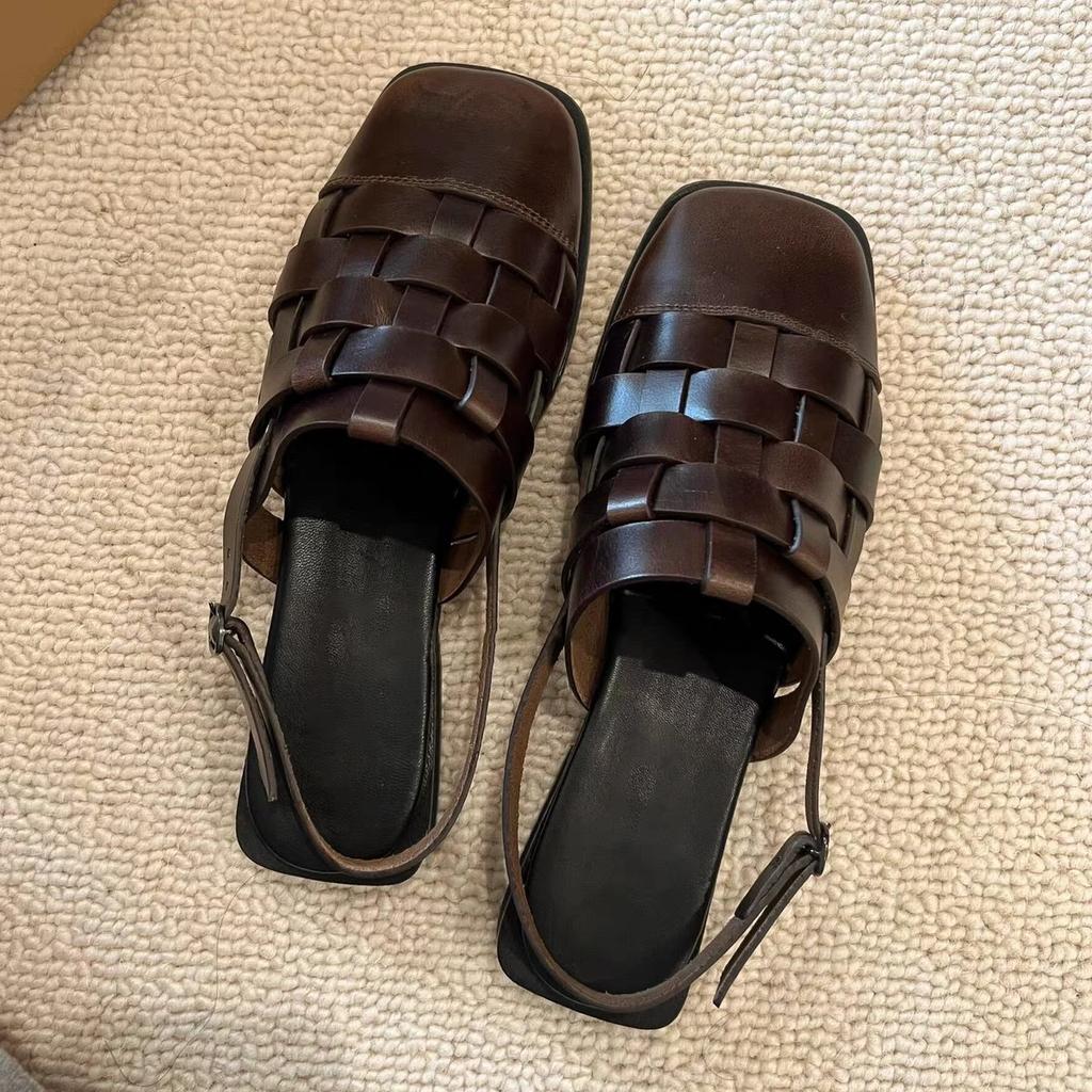 Mode NEU Leder Damen Ballerinas Webdesign Schnallenriemen Slingback Schuhe Damenmode Eckige Zehenpartie Freizeitschuhe Handgefertigt