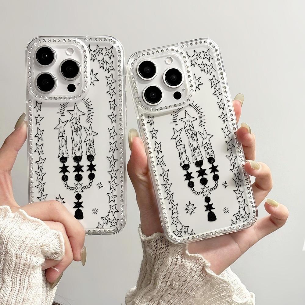 Armbandkette Handyhülle Für iPhone 17 16 15 13 14 für 17Air 17 12 14 16 Pro 17 14 16 Pro Max Funkelnder Diamant Niedliches Muster Hartschale Mit Trageband