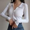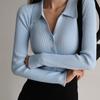 2025 Damen Revers Slim Tops Damen Knöpfe Sexy V-Ausschnitt Langarm POLO Kragen Strick Cardigan Pullover