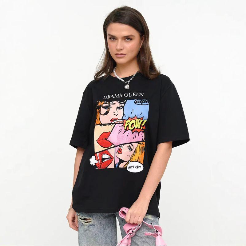 Western Style New Fashion Casual Loose round Neck Print Cotton T-shirt Top Loose Printed T-shirt