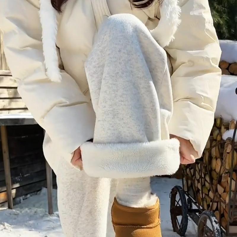 White gray fleece pants children autumn and winter high waist thin drape small casual thickened sweatpants wide leg pants