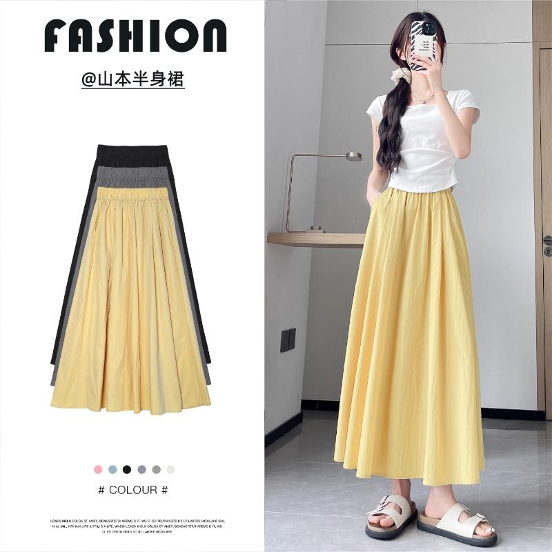 Yellow skirt women's new summer high-waisted word big pendulum umbrella skirt long skirt small ice silk Yamamoto skirt