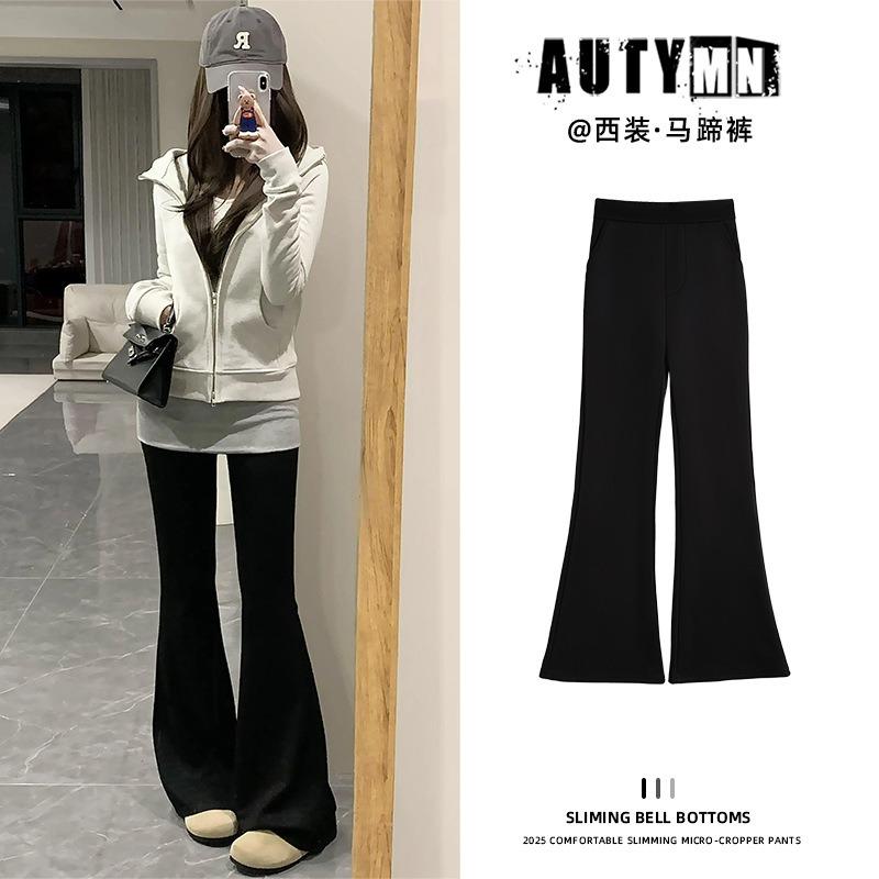 Slight suit pants women's spring and autumn new high-waisted thin small drape casual black horseshoe flared pants