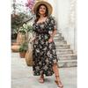 Maxikleid in Übergröße mit Vintage-Blumendruck, eckigem Ausschnitt und kurzen Ärmeln