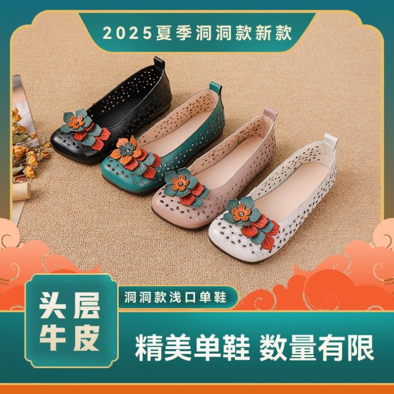 Superweiche Ledersandalen mit weicher Sohle, Rindensehnensohle, Damenschuhe, Lochschuhe, bequeme Einzelschuhe, flacher Ausschnitt, bequem