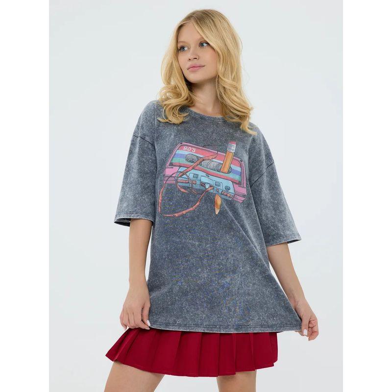 Western Style Fashion Washed Distressed Print Short sleeve T-shirt Loose Casual Top Printed T-shirt Top