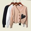 Spring New Elegant Gentle Sweet Heavy Industry Love V-neck Long sleeve Slim fit Cardigan Outerwear Knit Top