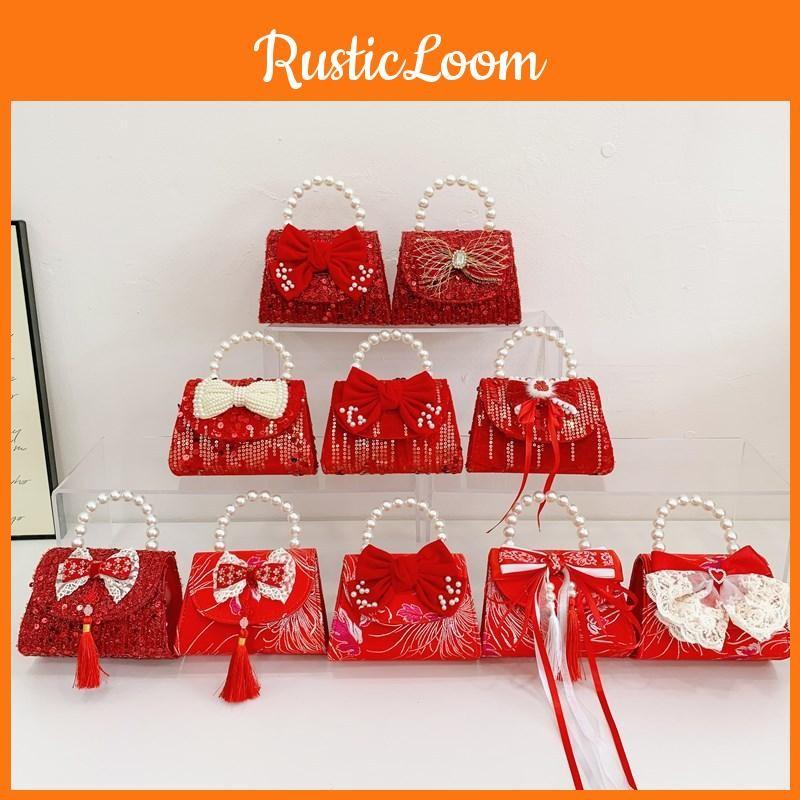 Glittery Festive Red Pearl Bow Bag For Children Ideal For New Year And Wear Casual
