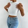 and American Foreign Trade Women's Clothing Top Pullover Sexy Turtleneck Open Back Sleeveless Midriff-Baring Short All-Match Small Vest for Women