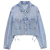 Fashion Wind 2024 Spring New Female Stylish Long Sleeves Washing Effect Bandage Denim Jacket Coat 6164095