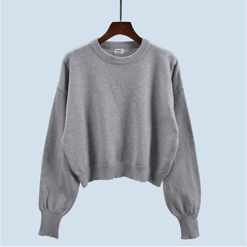 Export Cut Label Spring & Fall Knitting Bottoming Shirt Women's New Korean Style Lazy Style round Neck Loose Underwear Long Sleeved Top