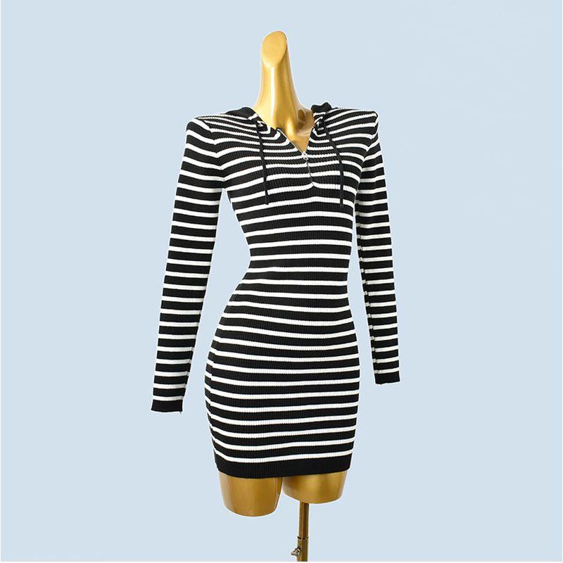 Niche Style Sexy Sexy Fashion Younger Hoodie Zipper Stripes French Style Temperament Hip Bag Dress Autumn and Winter Women