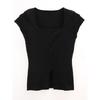 Ice Silk U-Collar Small Flying Sleeve Top Women Summer Western Style Waist Hugging Slimming Design Sense Front Slit Knit T-shirt