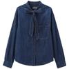 Fashion Style 2024 Autumn New Arrival Women's Stylish Easiest for Match Slim Looking Bowknot Decoration Denim Shirt 5520267