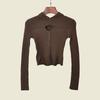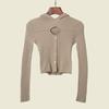 American Sexy Short Tops Solid Color High-Elastic Silm Cut Out Long Sleeves Hooded Knitting Bottoming Shirt