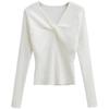 Export Cross V-neck Long Sleeves Knitwear Women's Fall and Winter New Arrival Six Wool Silm Fashion Bottoming Shirt Tops