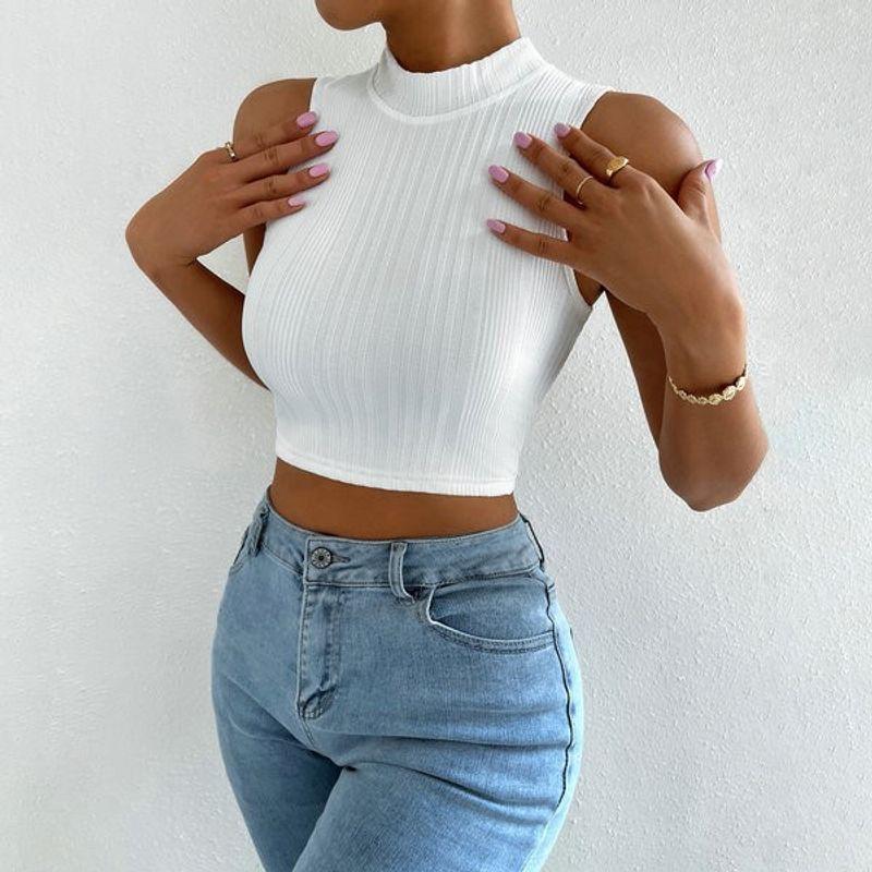 Foreign Trade Women's Clothing Pullover round Neck Sleeveless Midriff-Baring Short Vest Female Summer Outer Wear Inner Wear Micro Open Back Tops