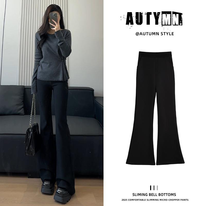 Micro-pull suit pants women's new spring and autumn high-waisted horseshoe pants small straight wide-leg black flared pants