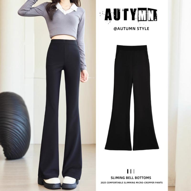 Black micro-pull suit pants women's autumn new small high-end loose casual thin flared pants