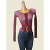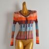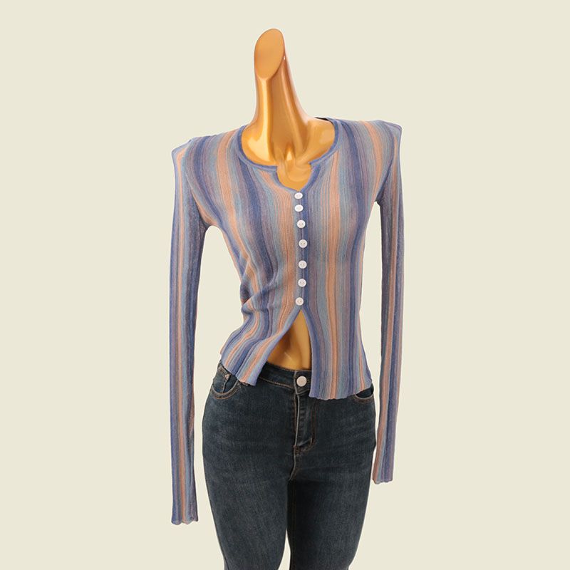 Vertical Stripes Gradient V Neck Tops Summer Thin Silm Single Row Button Women's Knitted Sweater Breathable Sun Protection Shirt
