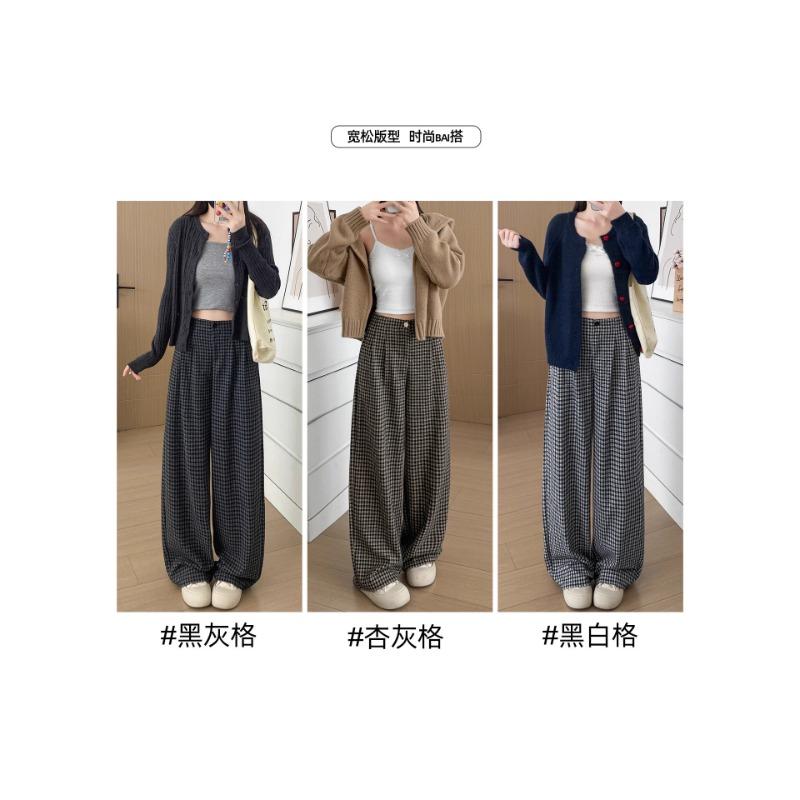 Woolen plaid pants women's spring and autumn new drape lazy loose pants small casual wide-leg pants