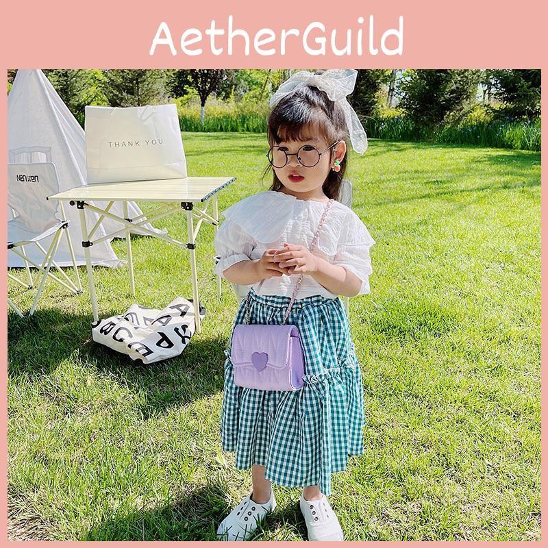 Solid Heart Color Shape Children Mini Chain Shoulder Bag Checkered Girls Pattern