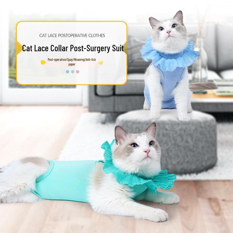 Grenzüberschreitender Katzen-Post-OP-Erholungsanzug - Atmungsaktiv, Verstellbar, Anti-Leck, Dünner OP-Anzug