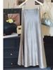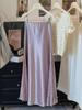 Stunning French Lace Patchwork Fishtail Midi Skirt: Silk-like Satin, Elegant Slim-Fit for Women