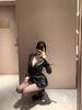 Elegant Striped Long Black OL Waist-Cinching Women's Shirt Lingerie