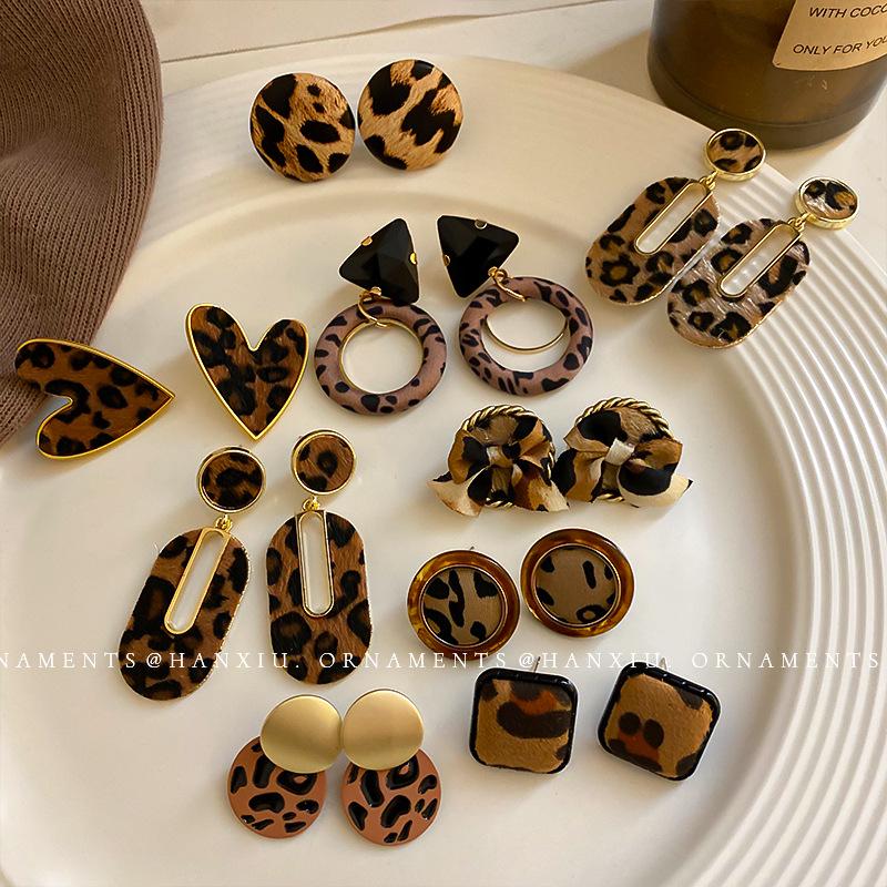 Silbernadel Leopard Herz Schleife Geometrische Hängeohrringe - Trendiger koreanischer Stil für Frauen