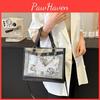 This medium-sized fashion handbag features a rectangular shape crafted from durable PU material, measuring 36*26*7cm high. Its sleek design includes decorative stitching, contrasting panels, and a top zipper closure for secure storage. Ideal for daily use, it supports casual outings and shopping trips. Wipe clean with a damp cloth for maintenance.