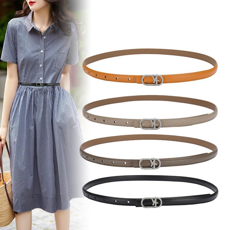 Simple Genuine Leather Belt for Women Fashionable Dark Green Decoration with Skirt Black Work Belt Cowhide Leather Belt Thin