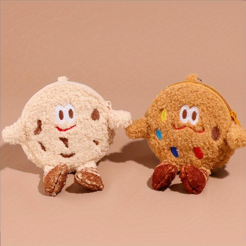 1pc Plush Cookie Coin Purse Unique Creative Cartoon Cookie Design Keychain Earbud Case Cute Cookie Shaped Storage Pouch