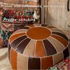 Decorative Moroccan PU Leather Pouf Soft Round Cushion Without Core Unstuffed Cushion Pillow Modern Home Decor for Living Room