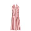 Zaprha New Women clothes Pleat Decorative V-neck Straight Hem Silk Satin Texture Long Dress 3684019