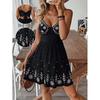 European and American Light Luxury Retro Embroidered V-neck Backless Lace-up Bow Sexy Sexy Sling Dress Skirt DRESS