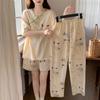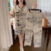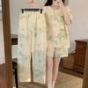 Damen Pyjama-Set im chinesischen Stil mit Brustpolster Sommer Kurzarm Kurzer Rock Oberbekleidung Hauskleidung Anzug