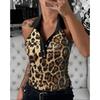 Night Club Style Sexy Europe and America Cross Border Summer New Arrival Leopard Print Color Sequin Lapel Sleeveless Vest Tops Bottoming Shirt