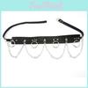 Fashionable Women Black Waist Belt With Circular Ring And Chain Tassel Daily For